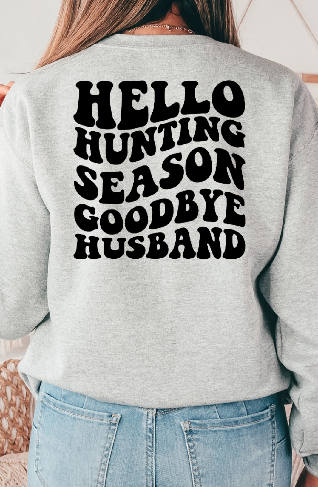 Whether you’re ready or not, it’s hunting season for your significant other. Say so long to him and hello to some alone time with this ‘Hello Hunting season Goodbye Husband’ crewneck. After all, ‘tis the season!